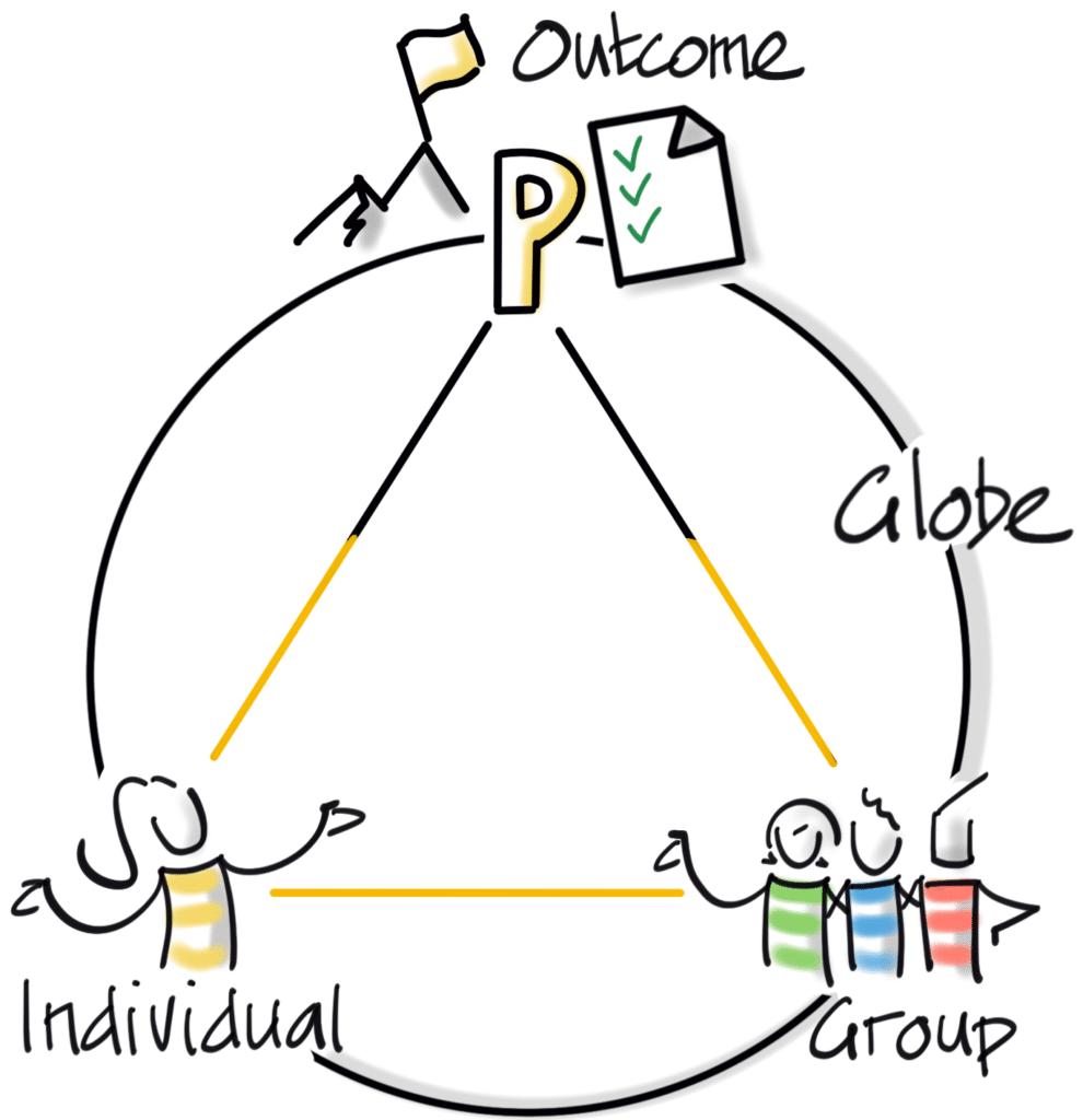 The triangle is encircled by a globe—the external environment. As the environment changes, the balance between the three points must shift too. The triangle reminds us that no single element can dominate; maintaining equilibrium is key to staying adaptive and effective.